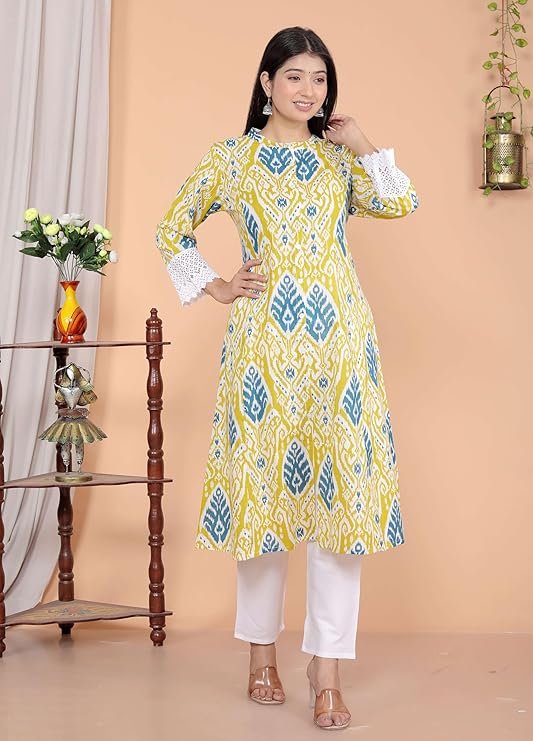Brighten your wardrobe with the 360 BHARAT CRAFT Cotton Printed Kurti with Pant Set. Designed in a fresh Lemon hue, this A-Line co-ord set is your ultimate solution for easy, eye-catching ethnic style. It perfectly blends traditional comfort with modern, crisp detailing.